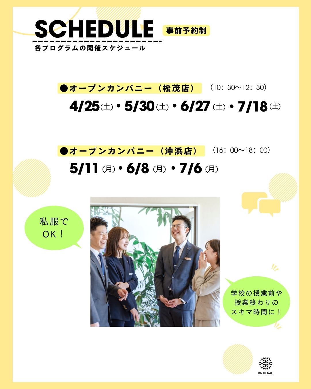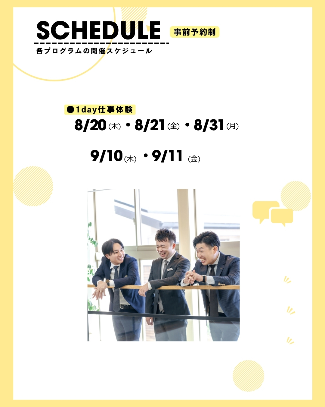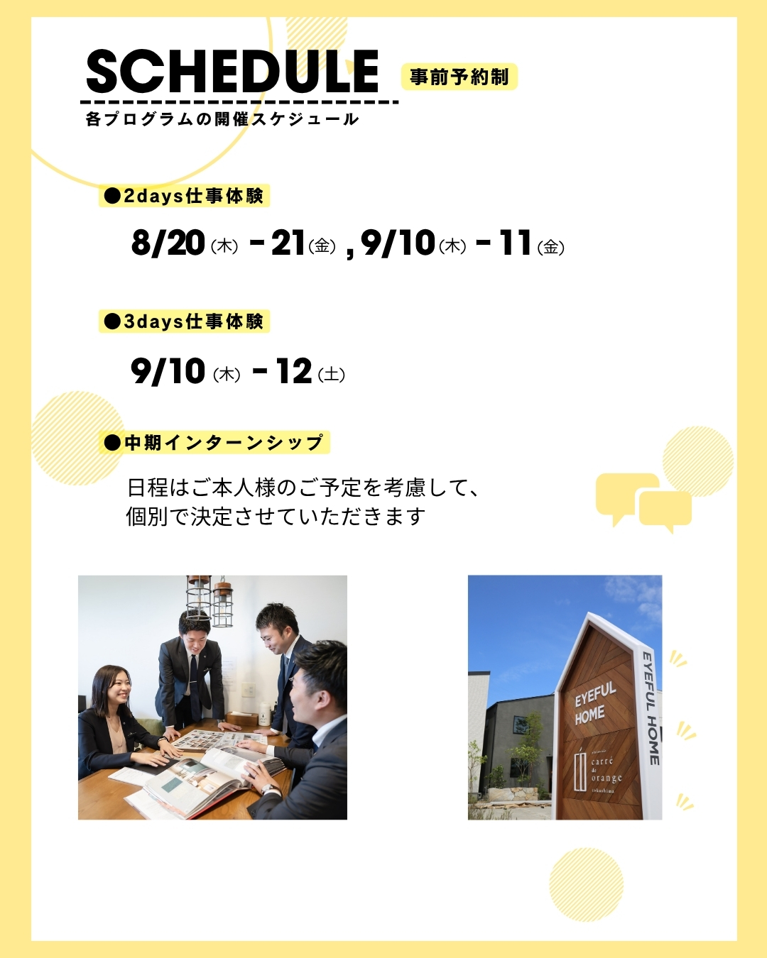 オープンカンパニー&インターンシップ&仕事体験の日程が決定しました!
